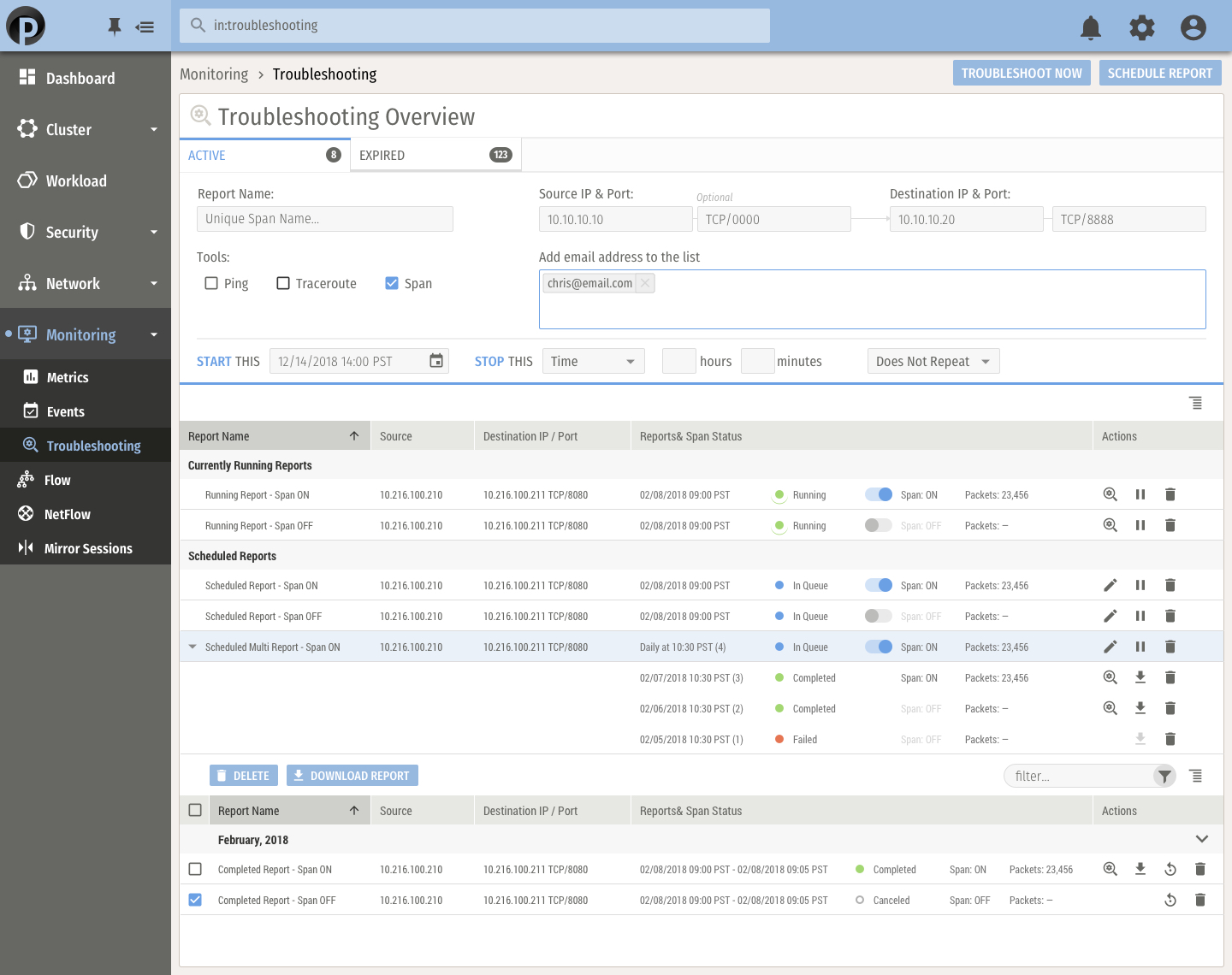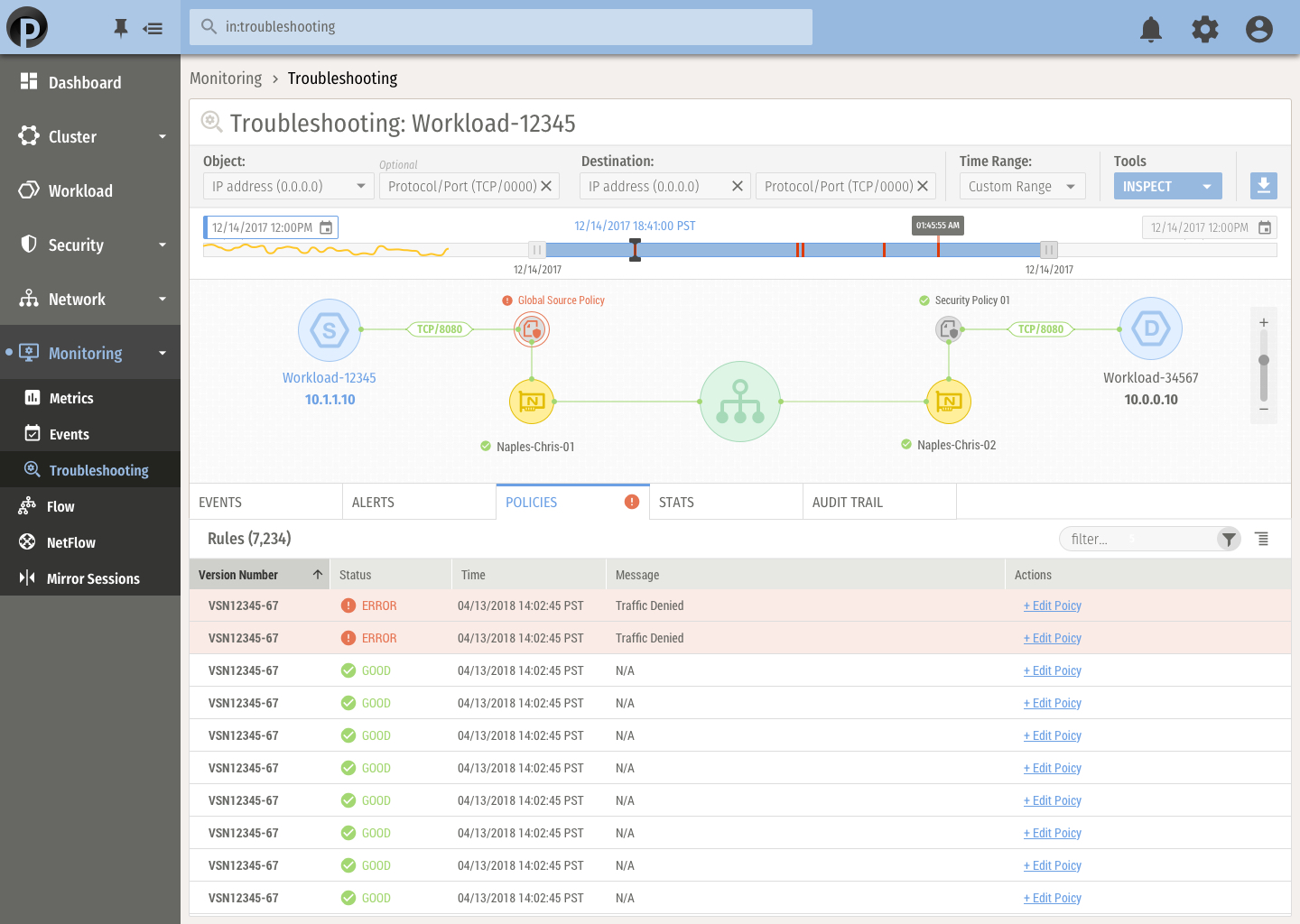 When a workload loses connectivity, the first question is usually: "Is it the firewall?" This interface allows admins to simulate and verify policy impacts. We designed a clear "Audit vs. Enforce" toggle and log view to help users determine exactly which security rule is causing a connectivity issue.